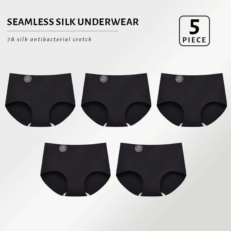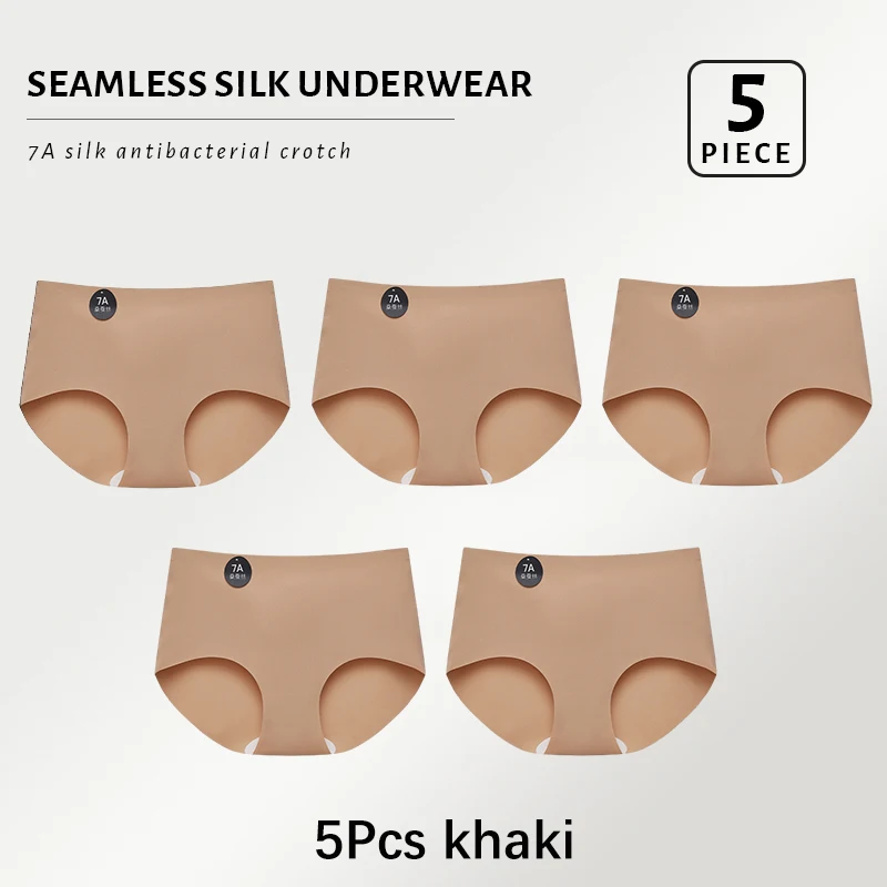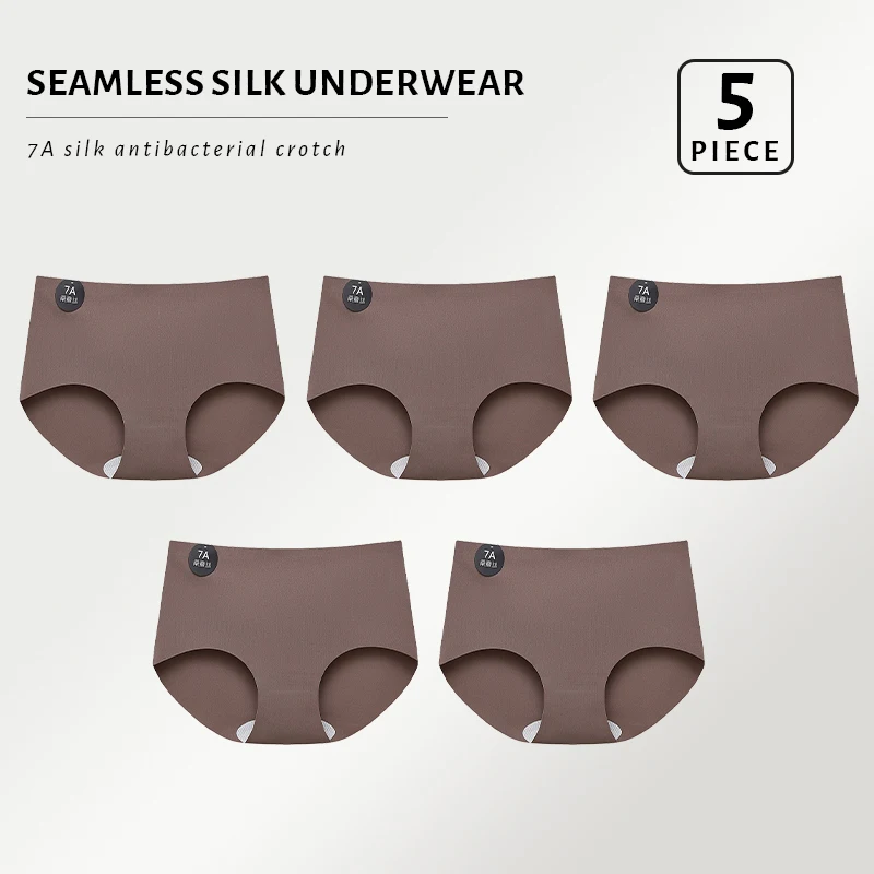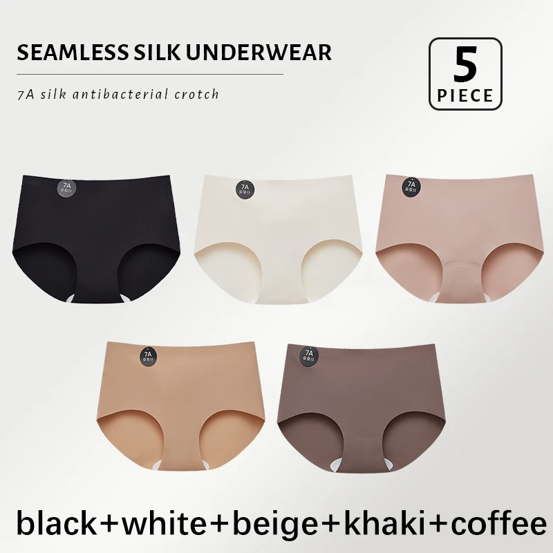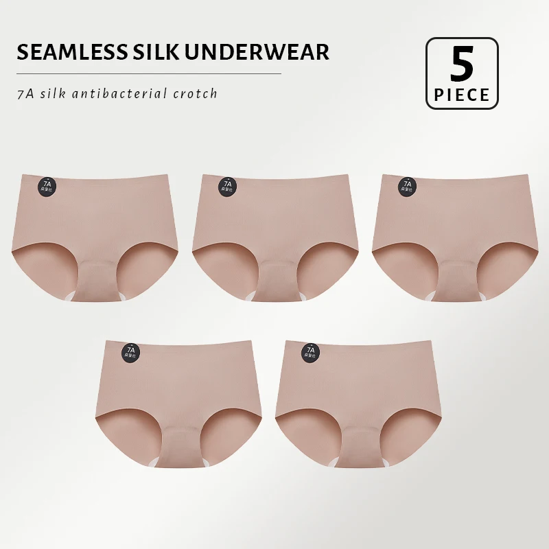 5PCS Seamless Mulberry Silk Panties Woman Underwear Ultra-Thin High Elastic Invisible Briefs Soft & Breathable Female Lingerie